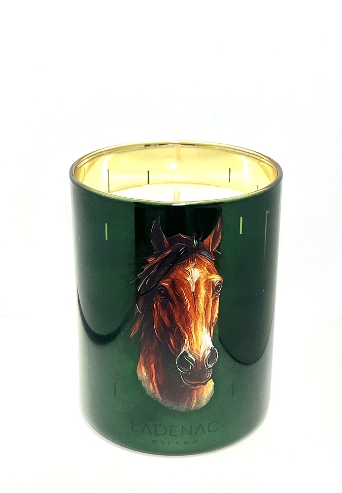 В этом году к культовой коллекции Africa от Ladenac Milano присоединяется новая свеча – Horse. Верхние ноты листьев дикого инжира, банана и саванного меда дарят ощущение утренней прохлады и дыхания пробуждающейся после дождя природы. В сердце композиции экзотический союз жасмина, зеленого ревеня и солнечного кокоса рождает нежный, но дерзкий танец света и тени. Свеча Horse представлена в стеклянном стакане цвета насыщенного зеленого леса с гравировкой лазером  в специальной технике.