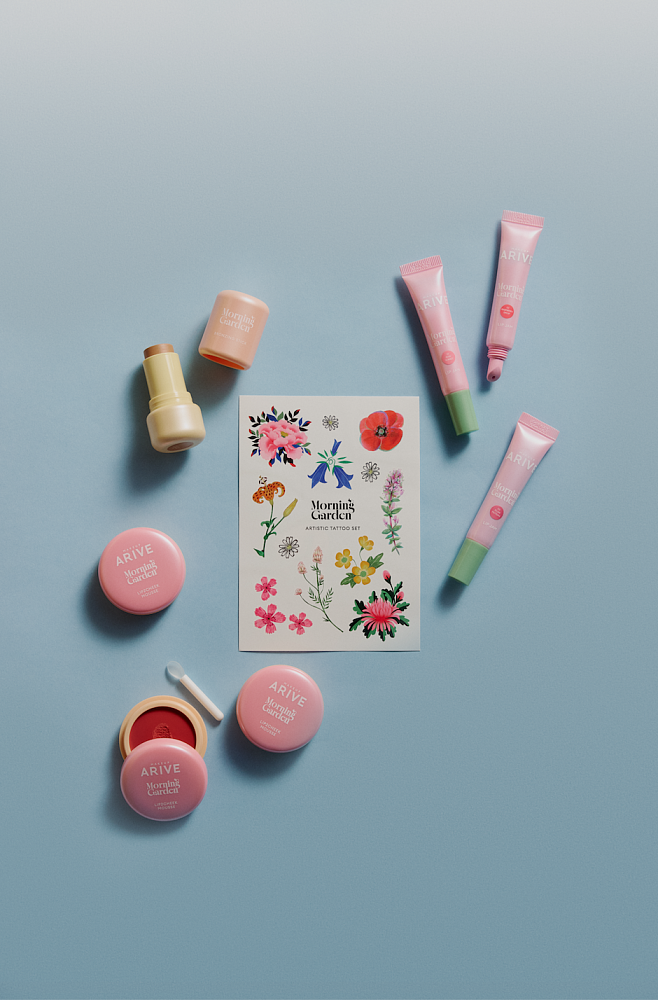 Новая коллекция включает универсальный мусс для губ и щёк с бархатным финишем в трёх оттенках, джем для губ с сияющим финишем в трёх оттенках (розовый, коралловый, глубокий ягодный) с ароматом азиатского персика и экстрактом тибетской малины, а также бронзер в стике, подходящий любому тону кожи для эффекта естественного загара. Текстуры лёгкие, легко наносятся пальцами или специальным аппликатором, подходят для быстрого макияжа. В коллекцию также вошёл набор переводных татуировок Morning Garden, созданный в коллаборации с художницами из разных регионов России. Каждая нарисовала цветок, связанный с родными местами и летними воспоминаниями.