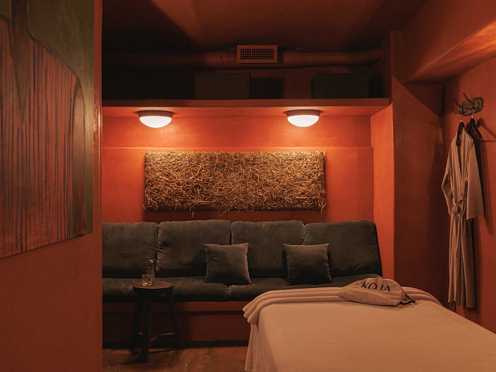 Философия бренда: кожа клиента — главное, с чем соприкасаются руки мастера, поэтому ключевая фишка процедур — непрерывное прикосновение. Релакс начинается еще на пороге салона: клиент попадает в безмятежную атмосферу с приглушенным светом и чувствует себя, как дома, а массаж продолжается даже во время ожидания эффекта от обертывания. В новой Кoja — атмосфера личного святилища с винтажными деталями, сценарным светом и полным погружением в релакс. Гостей переобувают в тапочки, угощают чаем и орешками. Если первая студия в Подколокольном была камерным «тайным убежищем», то новая — просторная «городская вилла» с расширенной релакс-зоной, кабинетом косметологии и укромным уголком для парных SPA-ритуалов.