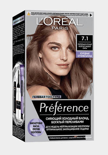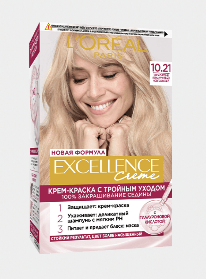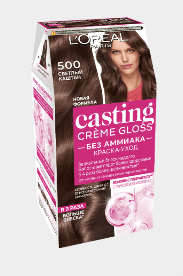 Стойкая крем-краска Excellence в оттенке 10.21 с тройным уходом: про-кератин и сыворотка защищают волосы во время окрашивания, средство на 100% закрашивает седину. Полустойкая краска Casting Creme Gloss в оттенке 500 усилена 10%-м комплексом «Ультраблеск» с гликолевой кислотой. Стойкая гель-краска Preference в оттенке 7.1 создана на основе объёмных красящих пигментов, которые дольше удерживаются в структуре волос. Оттенок вдохновлен Исландией — сверкающий пепельный блонд, холодный, как айсберги, подходит любому оттенку кожи. А тонирующий спрей Magic Retouch для тёмно-каштановых и чёрных волос мгновенно закрашивает отросшие корни и седину, быстро сохнет и держится до следующего мытья.