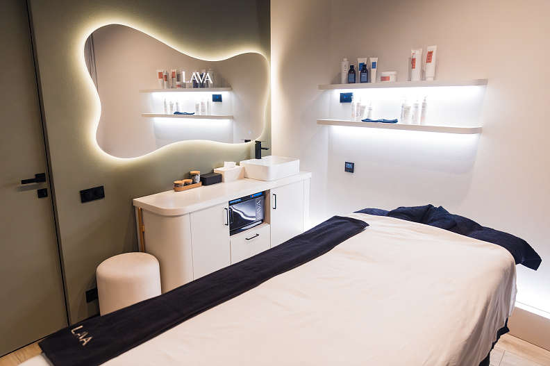 Это beauty-пространство премиум-класса, где гостям предлагают не просто уходовые процедуры, а полноценный отдых и восстановление. В LAVA оказывают такие услуги как уходы за кожей лица и тела, обертывания, коррекция фигуры при помощи аппаратных методик. Косметические средства и оборудование премиум-класса, а также инновационные beauty-программы позволяют получить идеальный результат. В LAVA предлагают уходы за кожей лица и тела, обертывания, аппаратную коррекцию фигуры с использованием косметики Thalion, Comfort Zone, RHEa, QMS. Интерьеры решены в естественной гамме «беж» и «экрю» с деревом, текстилем и мягкой неоновой подсветкой. Гостей ждут халат, тапочки, полотенца, а после процедуры — чай с травами для продления минут уюта.