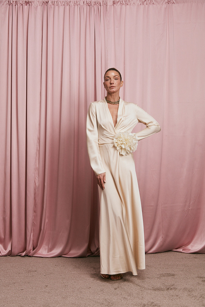Образы созданы на собственном производстве бренда в Санкт-Петербурге: от разработки лекал до финальной посадки при участии основательницы Юлии Кудрявцевой и команды портных. «Эта история про выбор себя, про мягкую силу и женственность без лишней демонстративности», — отмечает Юлия Кудрявцева.