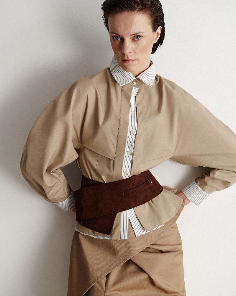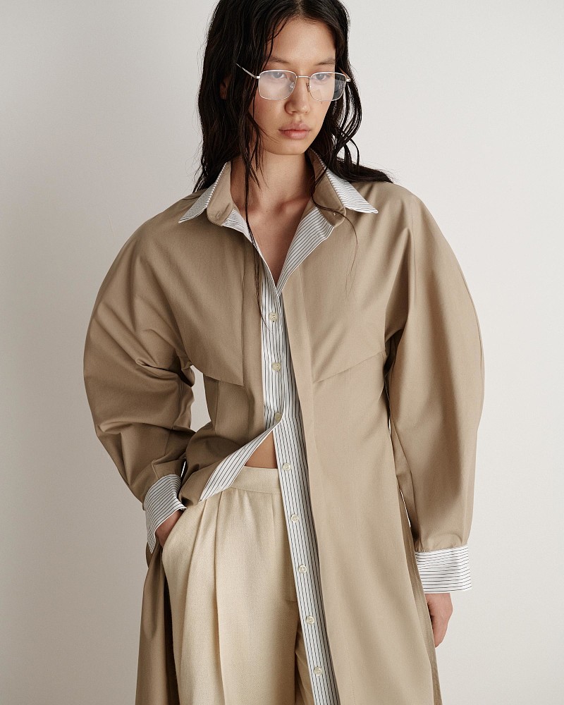 Spring 26 построена на балансе формы и мягкости, структуры и пластики. В коллекции используются натуральные и фактурные ткани: плотный хлопок, лёгкий лён, текстурные смесовые материалы и деликатная замша.