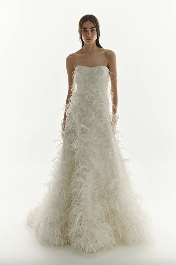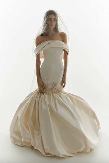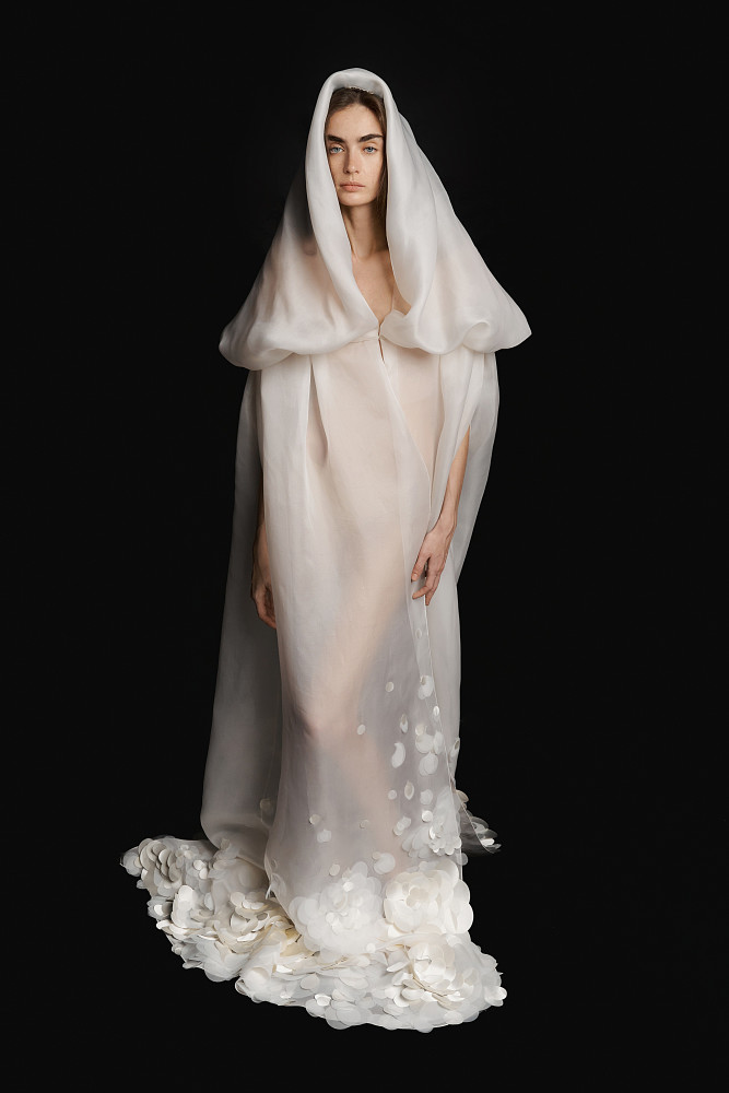 Bridal-линия продолжает ключевой код Дома — точность кроя, дисциплину силуэта и внимание к внутренней архитектуре изделия. Силуэты варьируются от графичных «русалок» до объёмных моделей с многослойными юбками. Даже пышные формы сохраняют собранность и баланс.