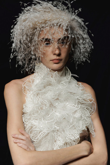 Коллекция предлагает современную интерпретацию классики: скульптурные корсеты, выверенная линия талии, многослойные юбки и сложная ручная вышивка формируют образ, в котором декоративность подчинена конструкции.
