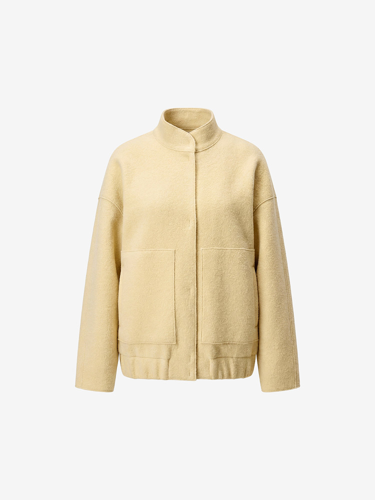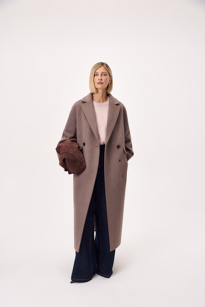 В цветовой палитре звучит сдержанный монохром: молочно-бежевые и темно-синие оттенки дополняются свежими акцентами зеленого и голубого. Силуэты вдохновлены пластикой городских фасадов и набережных: удлиненные объемные коконы, пальто-халаты с мягкими скульптурными линиями, куртки О-силуэта и морские пальто-бушлаты формируют выразительный, но сдержанный образ.