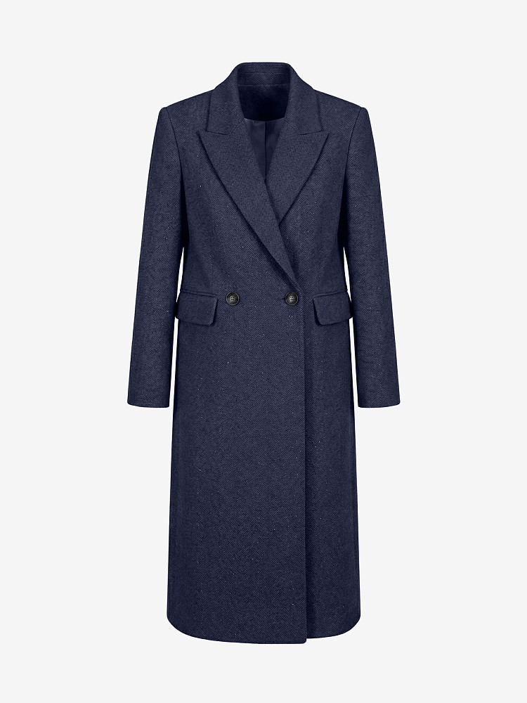 Особое внимание уделено фактуре и материалам. Тренд «тихой роскоши» становится осязаемым благодаря деликатному вплетению люрекса и пайеток в шерстяные ткани, создающему едва заметное сияние.