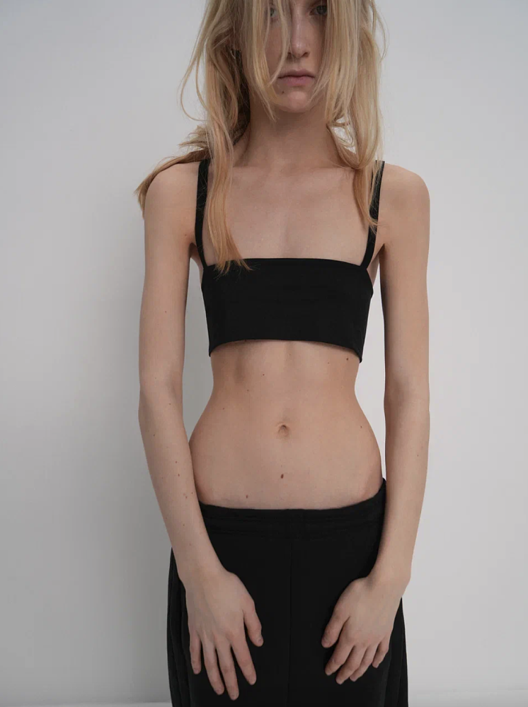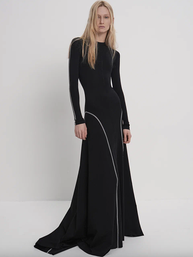 Ключевое внимание в коллекции уделено крою: длинные рукава, брюки, перетекающие в пол, и лаконичными предметами гардероба. Среди знаковых вещей — цельнокроеные водолазки без единого горизонтального шва и лонгсливы из плотного бифлекса с бандажным эффектом. В последних пристального внимания заслуживают плоские швы, которые анатомически подчёркивают линии тела.