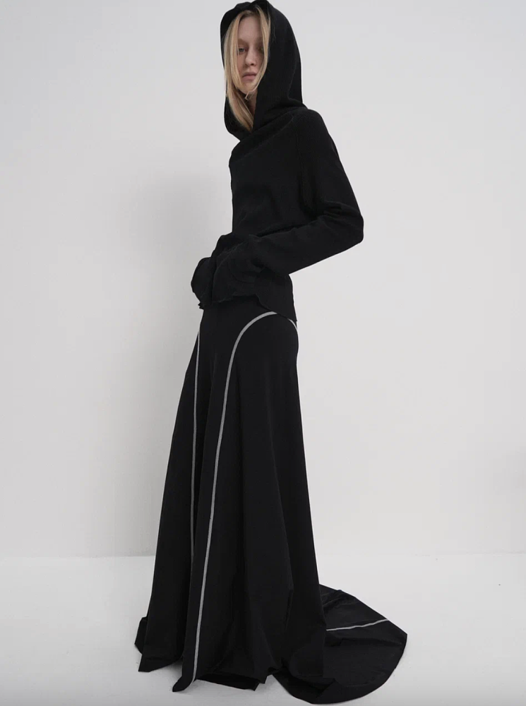 Главными инструментами «ГОША КАРЦЕВ» становятся архитектура кроя, физика тканей и линии тела. Героиня бренда не нуждается в визуальных маркерах, её гардероб — это спокойная база, где важна каждая деталь и даже необработанный срез.