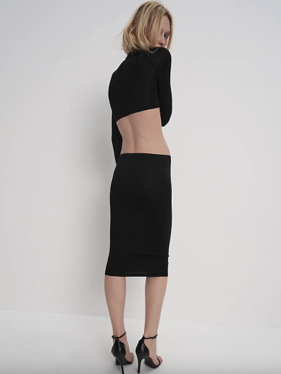 Для коллекции отобраны разные по фактуре ткани: от нежного тенсела до плотного футера, который держит форму. Единственным связующим звеном с ювелирной линией дизайнера стала серебряная вязаная юбка с вариативной посадкой.