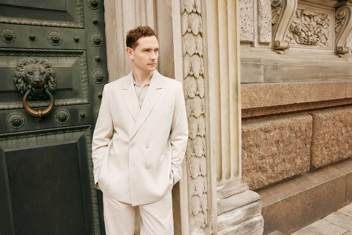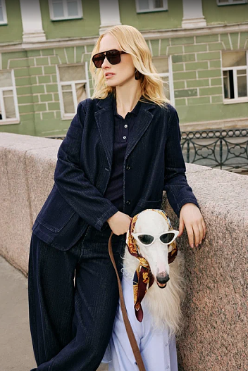 Женская линия строится на архитектурной игре противоположностей. Расслабленную мягкость струящихся актуальных сетов в пижамном стиле и легкого ажурного трикотажа уравновешивают структурированные блейзеры из плотного хлопкового денима. Комфорт здесь становится фундаментом, а эстетика — теми самыми пилястрами на колоннах. Благородная цветовая гамма отражает настроение северного лета: глубокий темно-синий, благородный серый, чистый белый и деликатные оттенки пастельного розового. Этим вещам не нужна сложная стилизация — образы складываются интуитивно.