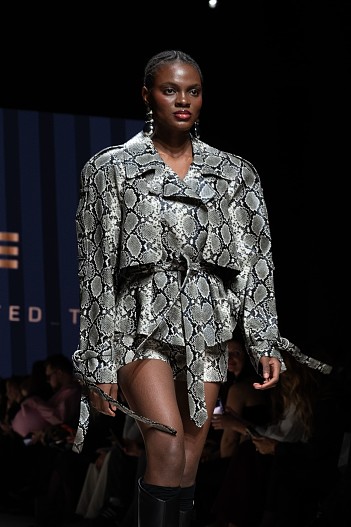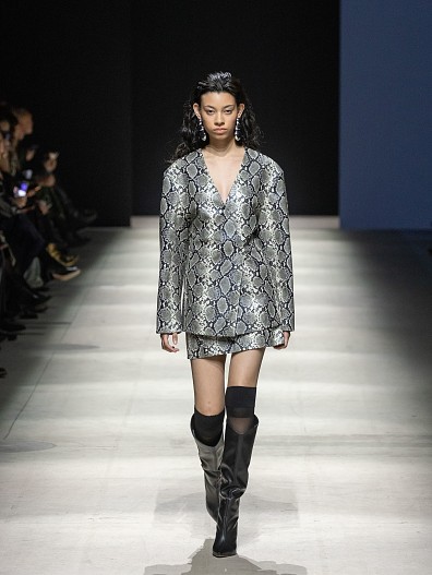 Жакет с рептильным принтом бренда Addicted To будет хорошо смотреться брюками любого кроя. А юбка с принтом питона станет изюминкой образа, но к ней важно подобрать лаконичный монохромный верх.