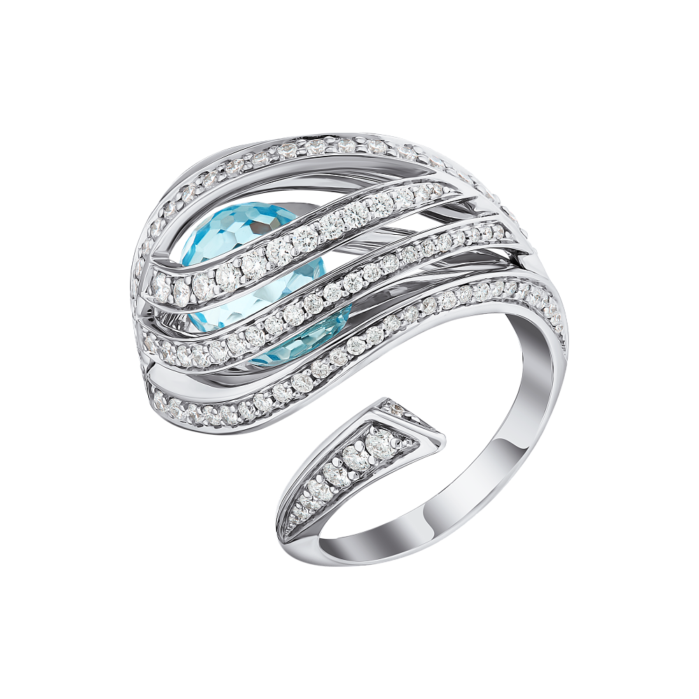 Коллекция «Океан»: Кольцо с топазом и бриллиантами, белое золото Коллекция «Океан»: Кольцо с топазом и бриллиантами, белое золото