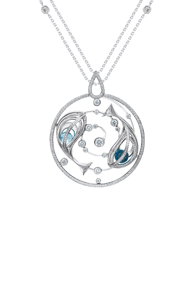 Коллекция «Океан»: Колье с топазами и бриллиантами, белое золото Коллекция «Океан»: Колье с топазами и бриллиантами, белое золото