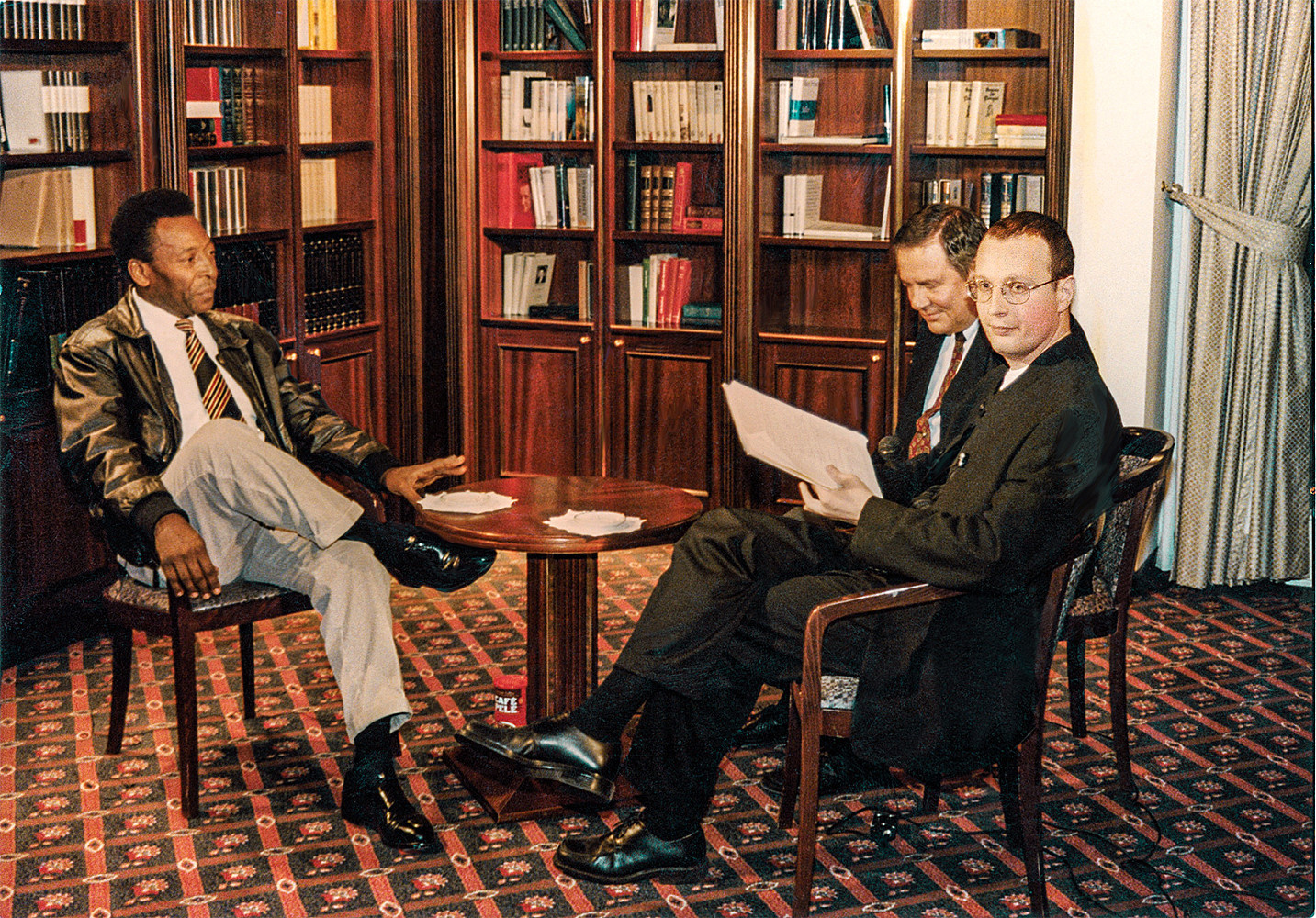 Ноябрь 1996 года. Шаболовка. Перед отъездом на очередную съемку слышу на ходу: — Хочешь снять фильм о Пеле? Конечно, эти слова я воспринял как шутку, не более того, и даже никак на них не отреагировал. Через пару дней вопрос повторился уже в более настойчивой форме. И тогда я спросил: — А как это возможно? Где? Когда? Оказывается, в январе будущего года Пеле должен был прилететь в Москву в рамках рекламной кампании своего именного кофе, и его менеджер выбрал наш проект «Субботний вечер со звездой» для эксклюзива с великим футболистом. Что ж, есть причина для гордости и ликования! Я до сих пор помню точную дату нашей первой встречи с Пеле — 21 января 1997 года.
