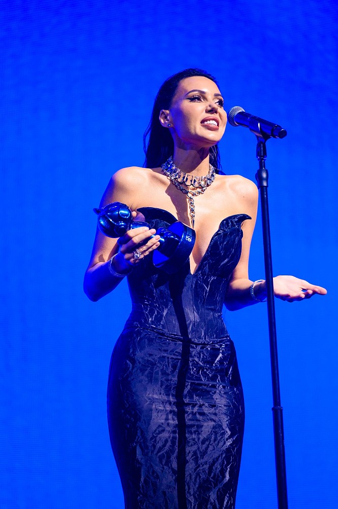 Для объявления победителя в номинации «Инфлюенсер года» на сцену поднялась Яна Рудковская. Статуэтку из рук звездного продюсера получила Оксана Самойлова.