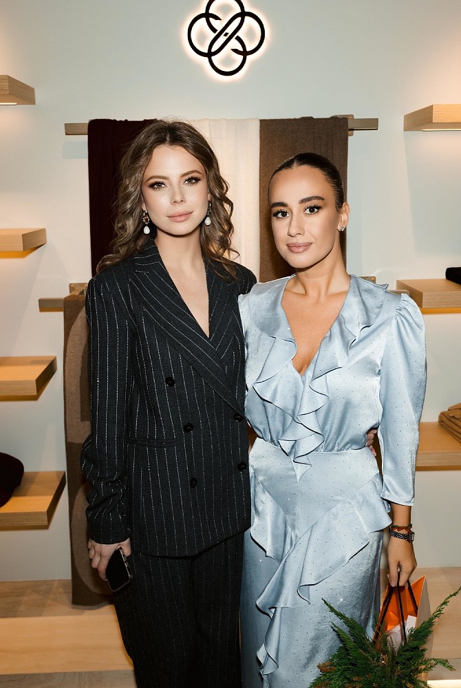 Капсула состоит из лаконичных моделей в благородных темных и глубоких цветовых решениях, выполненных из 100% кашемира высочайшего качества, шерсти из Италии, шёлка, кожи, и включает в себя: брючные костюмы с приталенными жакетами и акцентными пуговицами, костюмы с нитью люрекса и платья-пиджаки из шерсти, шёлковые платья и юбки, плиссированные мини-юбки из итальянской эко-кожи и авторскую разработку бренда, аналогов которой нет — леггинсы из натуральной кожи в чёрном и коричневом оттенке. После презентации Елена и Екатерина поделились идеями стилизации и помогли гостям подобрать готовые решения для встречи Нового года и загородного отдыха.