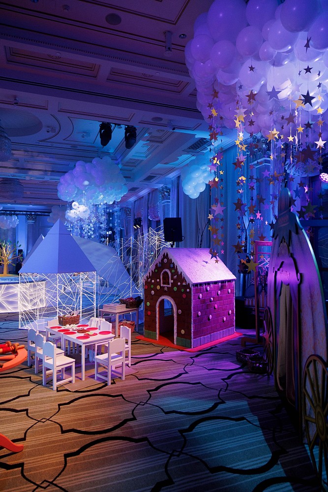 Главной темой новогоднего бала стала интригующая прогулка по миру известных европейских сказок. В зале «Чайковский» ожили красочные сцены популярных сказочных историй, среди которых «Золушка», «Пиноккио», «Мэри Поппинс», «Питер Пэн», «Винни Пух» и другие шедевры детской литературы. Атмосферу восторга поддерживали интерактивные карусели, игровые зоны с шарами, увлекательные творческие мастерские и оригинальная кондитерская инсталляция в виде пряничного домика, где каждый смог проявить фантазию, украсив лакомство сладкими узорами, а затем насладиться вкусом собственного творения.