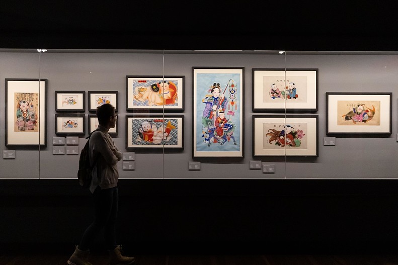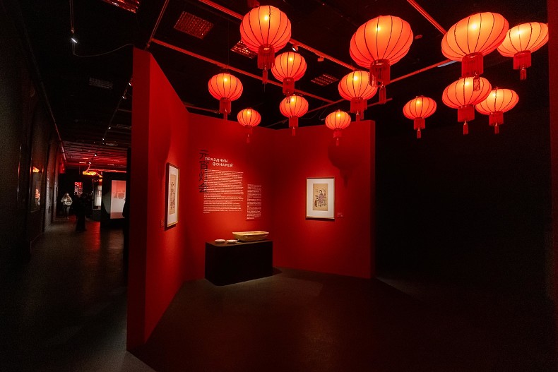 Сквозь всю выставку проходят знаменитые новогодние картины (няньхуа, 年画) — лубки, которые иллюстрируют празднование Нового года на каждом этапе. По всему Китаю сформировались свои региональные школы няньхуа, которые отличались визуальным стилем и смысловым наполнением. Главным центром производства няньхуа для Пекина стал поселок Янлюцин. Эти листы — особый вид традиционного искусства: они не просто несли благопожелания, но и выступали своеобразной хроникой эпохи. В экспозиции представлены образцы рубежа XIX–XX веков, а также современные няньхуа, приобретенные кураторами выставки в рамках научной экспедиции в Китай.