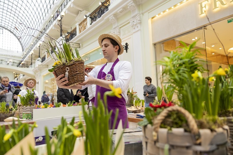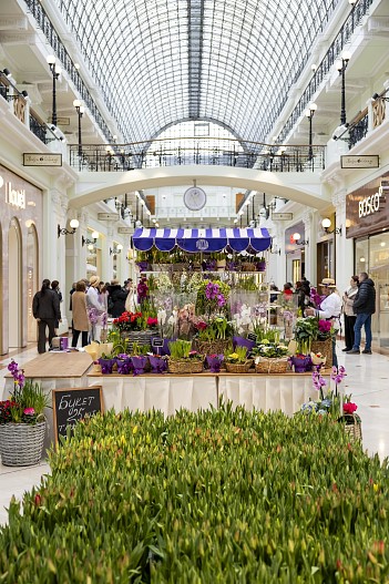 Весна пришла в Пассаж! В преддверии 8 марта здесь открылась Цветочная Ярмарка «Пассаж в цветах», на которой можно выбрать праздничный букет на любой вкус. Среди ассортимента — тюльпаны, ирисы, мимоза, нарциссы и экзотические ветки сливы, магнолии, вишни, привезенные из Китая, символизирующие приход весны.