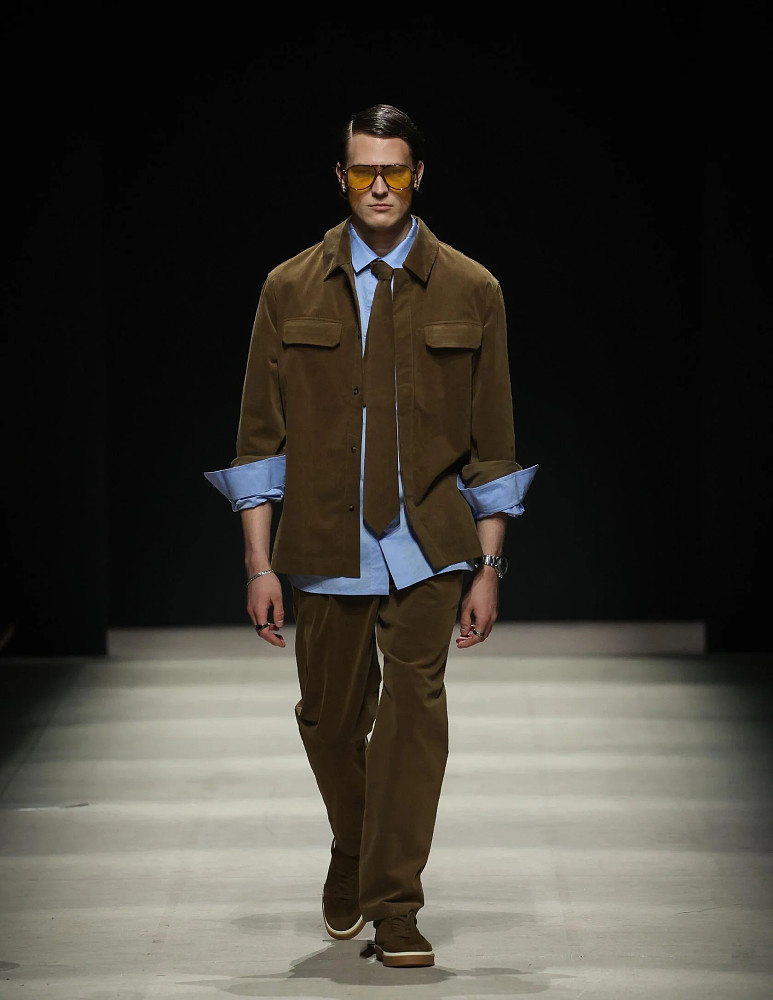 В коллекции используются премиальные материалы с богатой фактурой: шерсть, смесовые ткани, мягкий трикотаж и плотный хлопок и актуальный вельвет.  Они создают визуальную глубину и ощущение современной роскоши без излишней демонстративности.