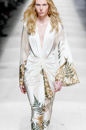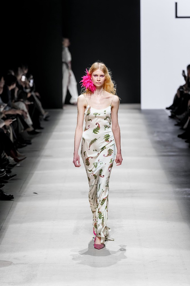 Ключевым элементом коллекции и главным обрамлением образа папоротника стали флористические принты, впервые разработанные дизайнерами LEFFERS. Для их нанесения используется технология цифровой печати на ткани, которая позволяет передать тончайшие линии и сохранить графичность рисунка. Растительный мотив реализован на шелковом атласе и воздушном шифоне молочного и темно-зеленого оттенков. Абстрактный рисунок, напоминающий кору дерева, нанесен на ткани зеленого и голубого цветов.