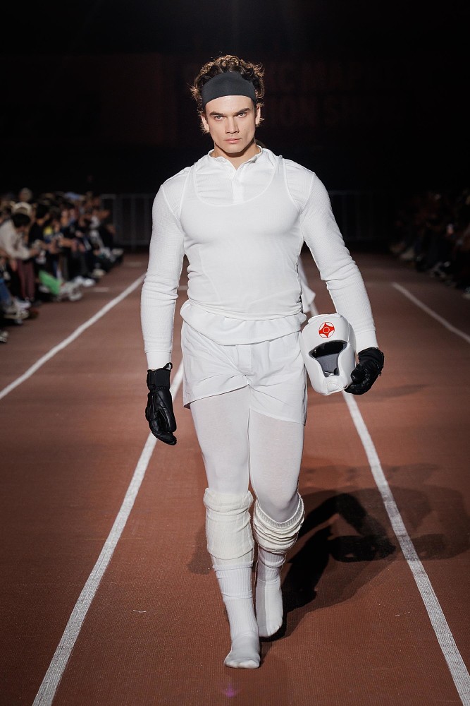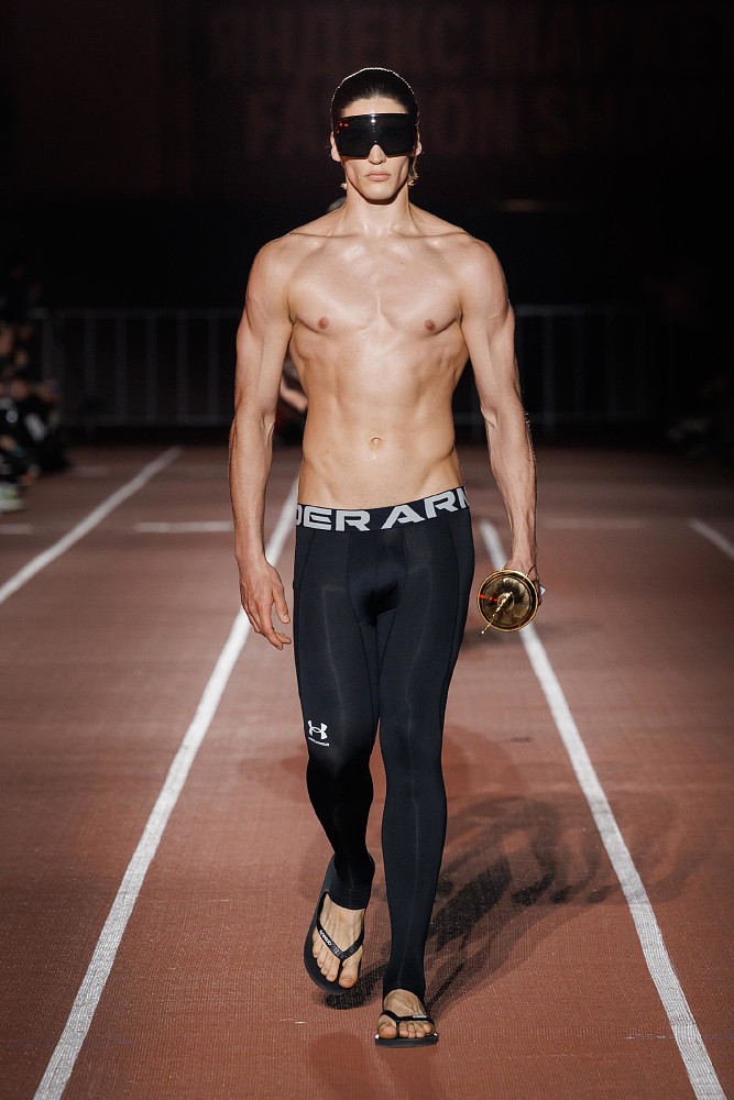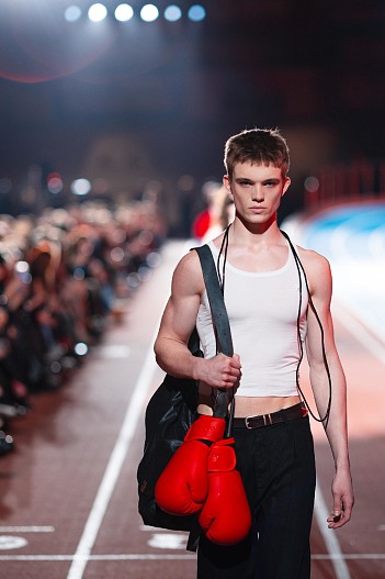 Спортивная энергия и эстетика получили логичное продолжение и в самом пространстве показа: на один вечер Яндекс Маркет превратил крытый легкоатлетическо-футбольный комплекс ЦСКА в подиум. По словам продюсера показа Артёма Кривды, источником вдохновения для команды Яндекс Маркета стали спорт, молодость, архитектура и дух спорткомплекса, где начиналась карьера многих ярких атлетов. Вместе с командой бренда Артём Кривда переосмыслил ключевой прием спортивного визуального кода — контрастность и максимальную выразительность, сохранив при этом среду, мгновенно привлекающую внимание.