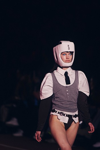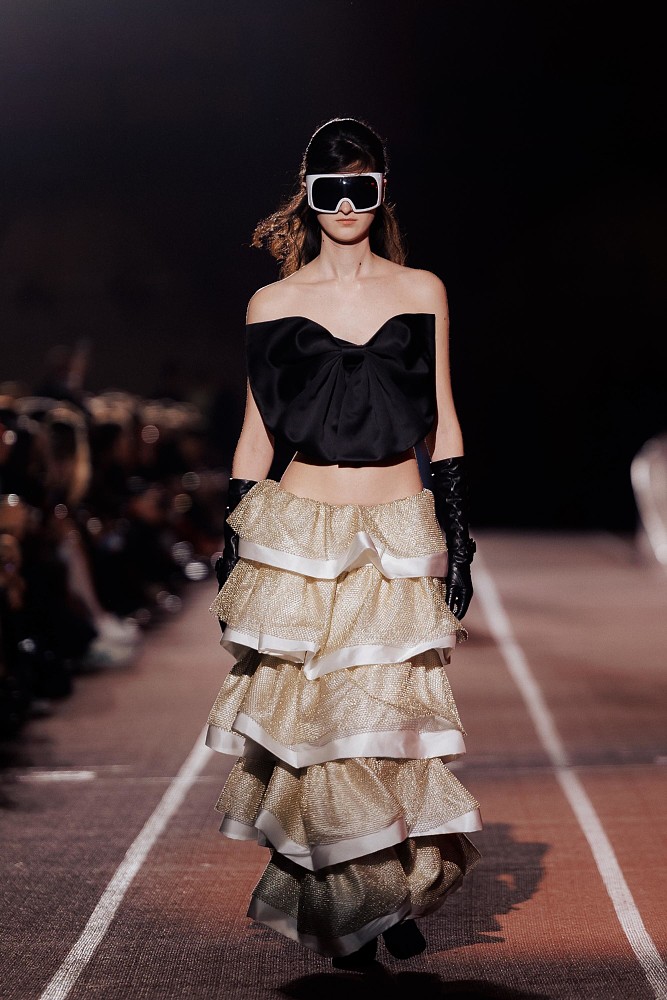 На подиуме спортсмены и модели представили около 150 образов, стилизованных Викой Салават, братьями Хованскими, Кириллом Павловым и Вовой Кравченко. В показе участвовали 80 брендов из ассортимента Яндекс Маркета и раздела Ultima, в их числе — молодые локальные марки, приглашенные командой маркетплейса в рамках программы поддержки российских дизайнеров. Как отметила Вика Салават, образы задумывались как повседневные и носибельные, поэтому в них появились отсылки к разным видам спорта — от велоспорта и тайского бокса до йоги и сноубординга, а также характерные детали вроде шлемов, перчаток и ракеток. Общей идеей стало объединение разных брендов в цельные образы с акцентом на геометрию — это подчеркнули прически и яркий макияж.
