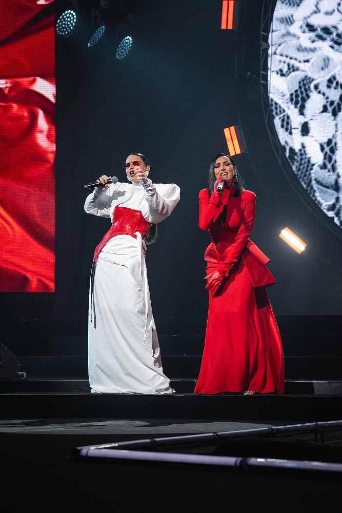 Артисты выдержали дресс-код в красных, белых и черных цветах. Дорожка традиционно превратилась в отдельное шоу с перформансами и яркими выходами. Так, инфлюенсеры Аня Ищук и Димасблог появились в образах, собранных из чеков, а Юлия Савичева привлекла внимание нарядом с эффектом «черных слез» — темные капли стекали по всему костюму.