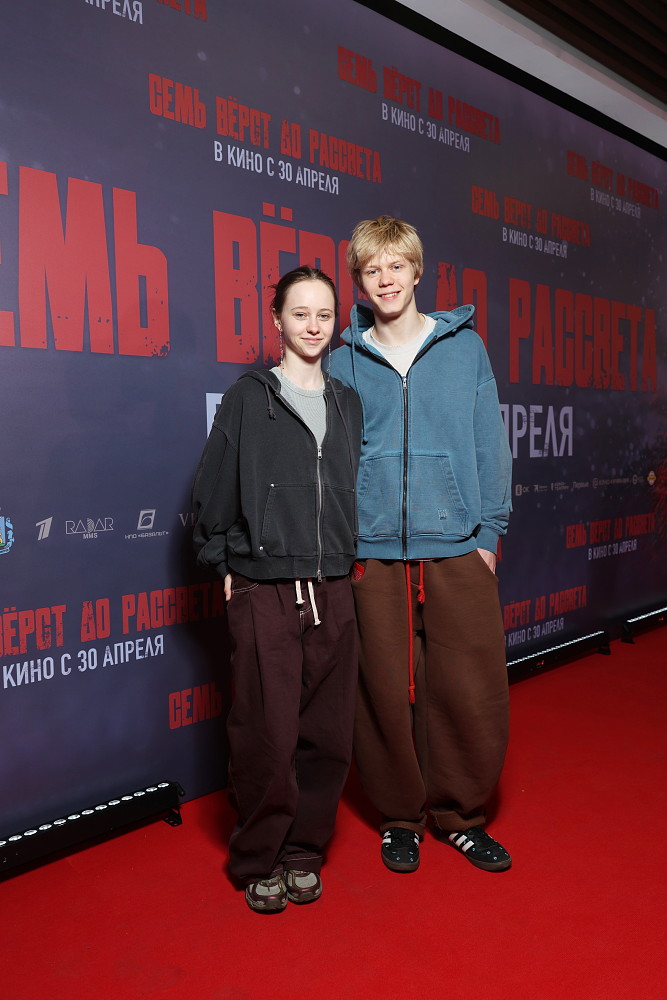 Фёдор и Виктор Добронравовы, Олег Гаас, Мария Шукшина на премьере картины «Семь верст до рассвета»
