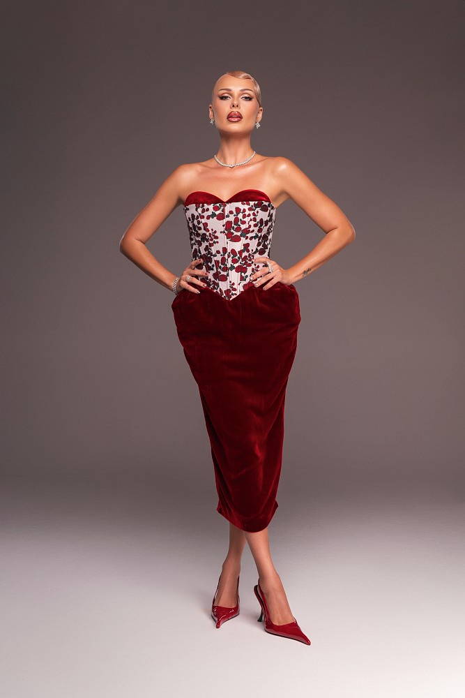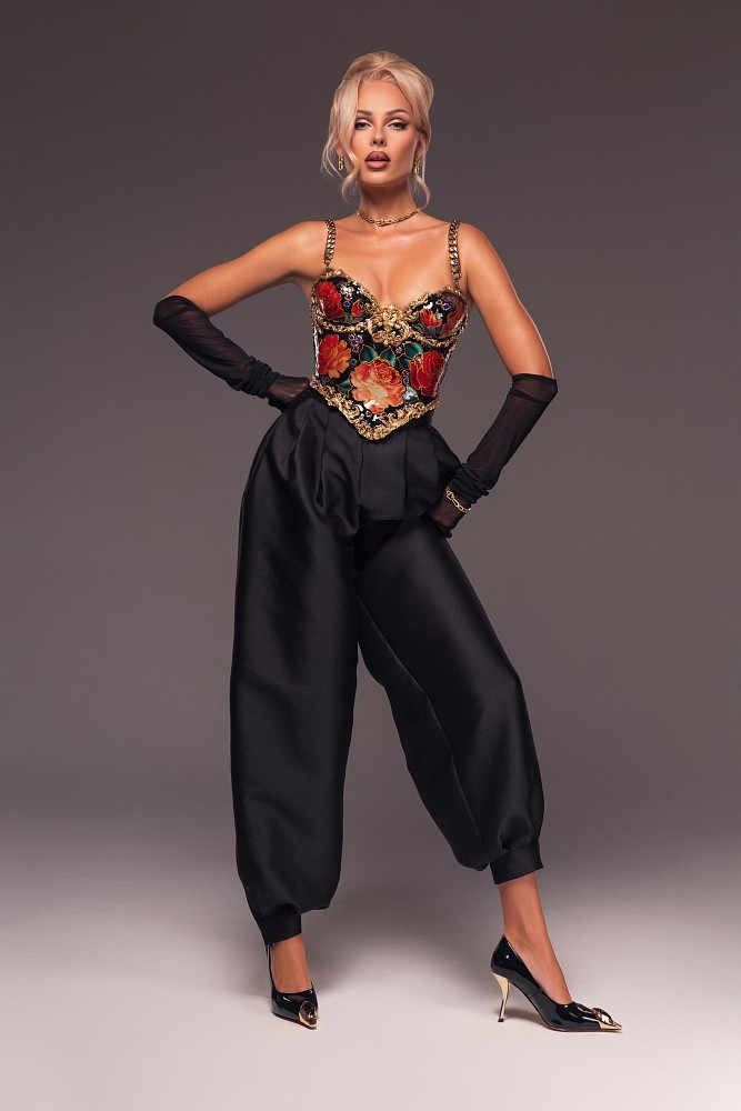 Да-да. А вообще не знаю, с чем это связано. Может быть, с общим трендом, а может, с тем, что происходит сейчас в мире. Но так складывается, что мне очень близок этот вайб. Русские народные платки, например: я сейчас буквально каждый день в них — и на съемках, и вне съемок, и в аэропорту, и на гастролях. Наверное, это связано с каким-то общим настроением, которое чувствуешь и в России, и за ее пределами. И когда появилась возможность сделать большую съемку, мне захотелось, чтобы этот стиль был и здесь тоже. Потому что «Русская красавица» — это очень про меня. И этот вайб, который я сейчас чувствую, — довольно глубокий.