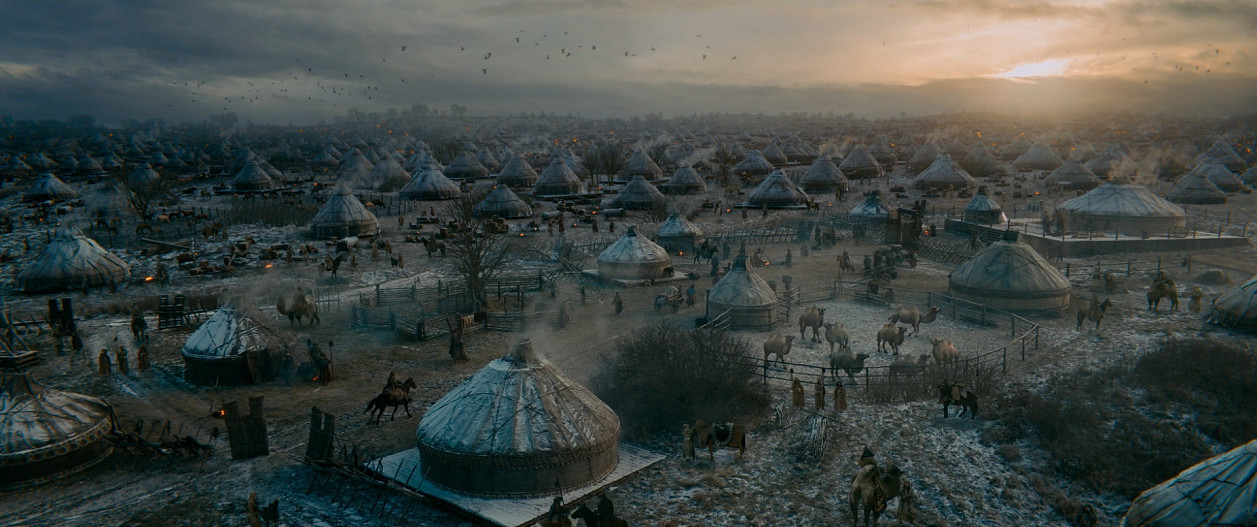 Для натурных съемок двухмесячной осады Козельска был выстроен полномасштабный город с 40 полноценными строениями: деревянными избами, дворами, заборами, церковью, княжим домом, кузней – все это окружено огромной, двенадцатиметровой высоты бревенчатой стеной с частоколом и рвом с водой пятиметровой ширины по кругу.