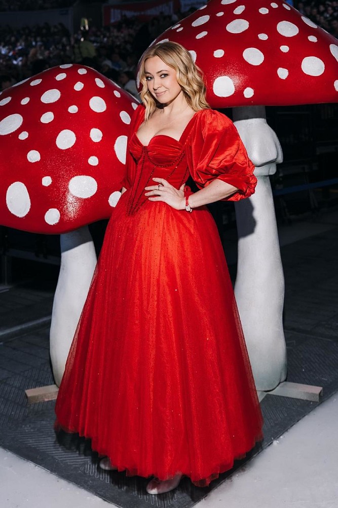 Зрелищные масштабные декорации, яркие и эффектные костюмы героев — всё в шоу продумано до мельчайшей детали. Сама же Яна Рудковская появилась перед зрителями в красном пышном платье от Solangel, добавив яркому шоу еще больше красок и великолепия.