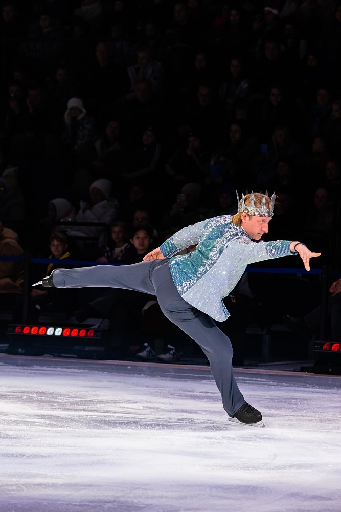 Ну и конечно, с особым нетерпением зрители ждали появления на льду олимпийского чемпиона и виртуозного фигуриста Евгения Плющенко в роли Короля, отца Белоснежки. Момент шоу с сольным прокатом Евгения, где говорится о продолжении нас в наших детях, способен растопить не только лед, но даже и самые черствые сердца.