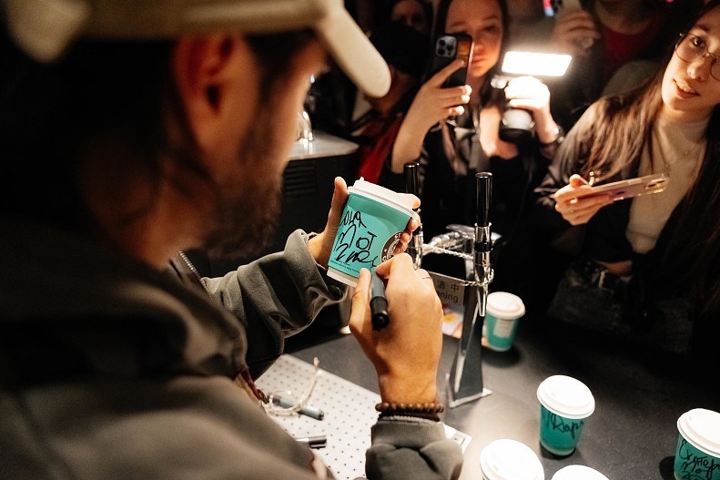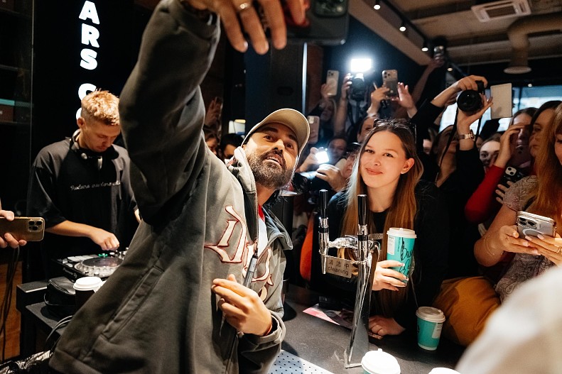 И, конечно, незабываемым для гостей и поклонников артиста событием стал личный визит Мота в кофейню. Он лично встретил гостей за баром, сделал немало совместных селфи и раздал автографы. А еще лично готовил кофе и подписывал стаканчики — кофе из них по-особенному согревал в этот прохладный весенний день, а сами стаканчики стали настоящими сувенирами. Встреча закончилась феерично: Мот устроил жаркие танцы под свой завирусившийся трек «Как к себе домой» вместе с поклонниками.
