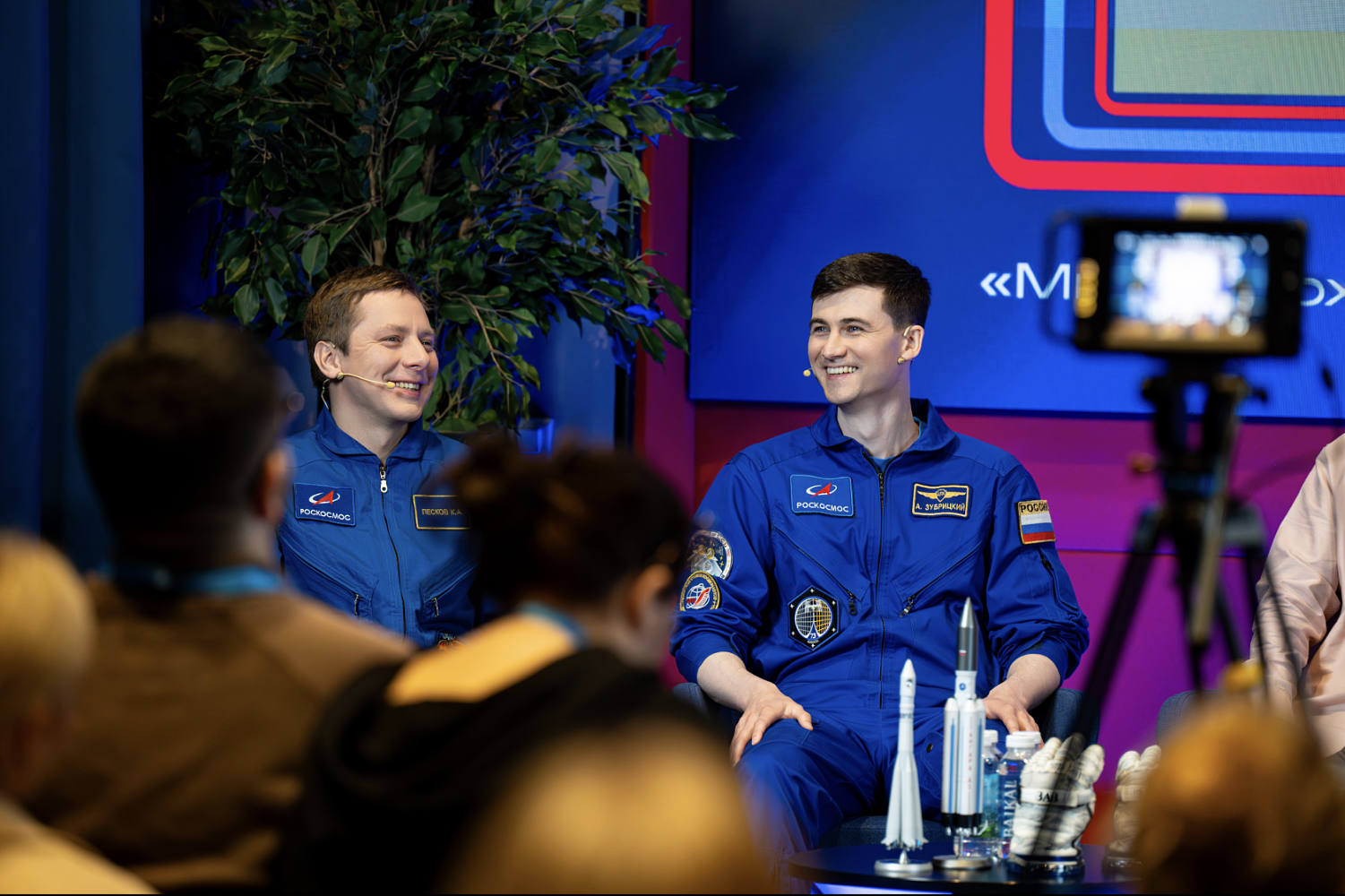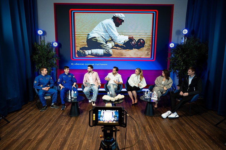 Кирилл Песков и Алексей Зубрицкий объяснили, где кино приукрашивает реальность, и поделились деталями своей подготовки и жизни на орбите. Во время парашютной подготовки они решают логические задачи за 60 секунд в свободном падении с высоты 1 200 метров — задачи записаны прямо на запястье. В космосе играют в шахматы на магнитах, чтобы фигуры не разлетались по модулю. Космонавты рассказали, что толщина стенок модулей МКС составляет всего 2 мм, иногда человека и открытый космос разделяет 1 мм резины. Они отметили, что в космосе давно нет классических тюбиков. Еду готовят на специальном заводе: её обезвоживают и откачивают воздух.