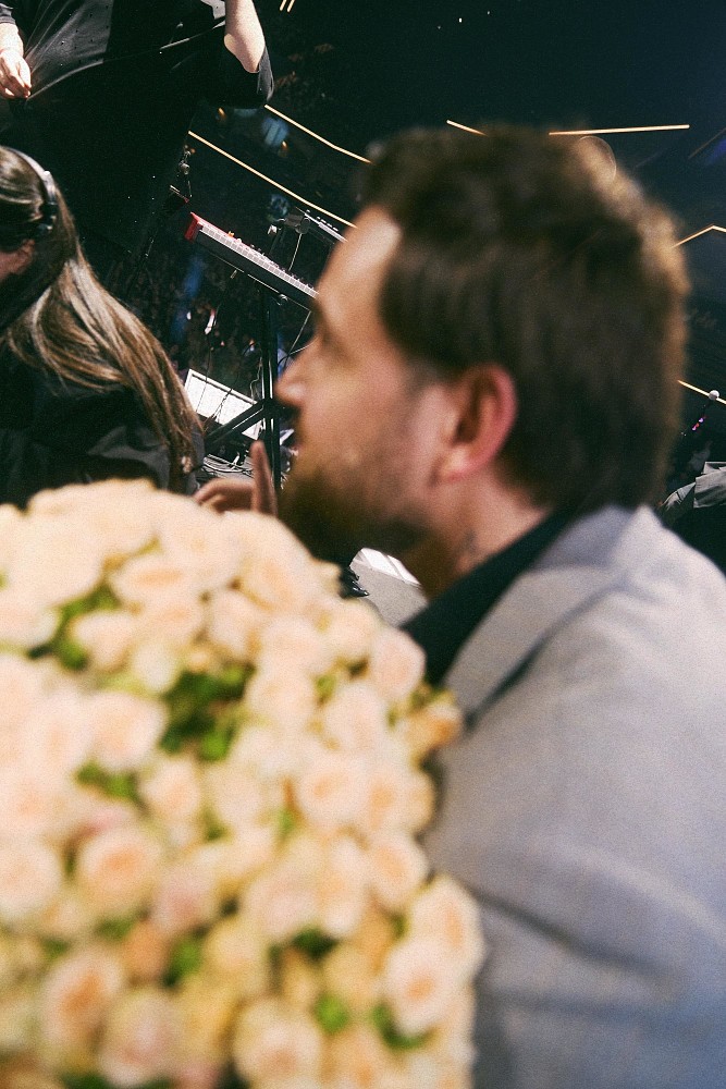 В преддверии исполнения трека «Вселенная» на сцену поднялся муж SEVILLE, TONI, с букетом цветов. «Это моя Пуговка», – трогательно сказал он.
