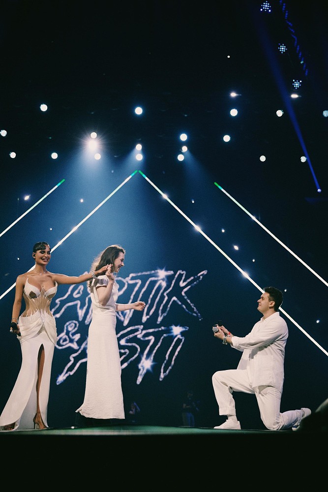 Гендер-пати стало не единственным романтическим сюрпризом в этот вечер. Прямо на сцене Live Arena молодой человек Влад сделал предложение своей девушке. Пара отпраздновала помолвку и исполнила свой первый танец в статусе жениха и невесты под живое исполнение SEVILLE песни «Вселенная». Таким образом концерт стал настоящим праздником любви.