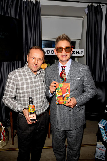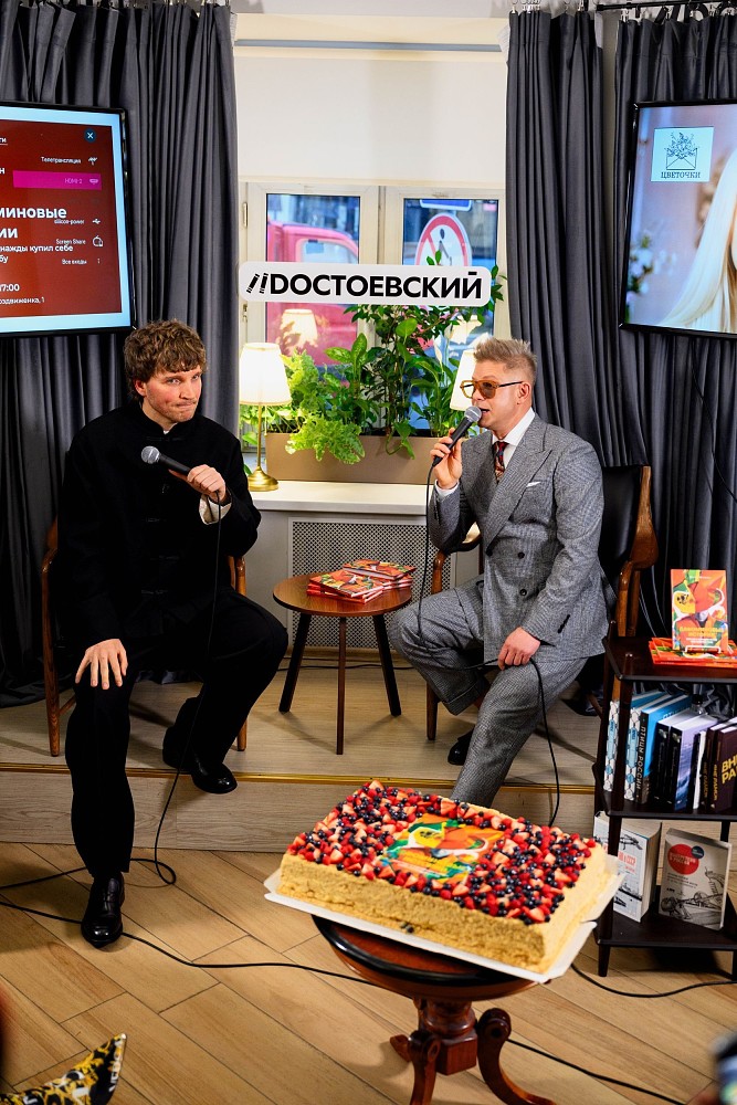 За игристое настроение вечера отвечала компания ISSI Spirits итальянское просеко Gaetano, которое сочеталось с десертами премиум-сегмента от «Особенный Наполеон». Артисту был преподнесен фирменный торт с изображением обложки книги.