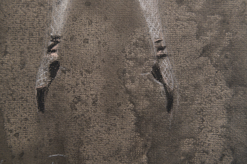 «Я пробовала работать в разных техниках: акварели, карандашах, туши, но в итоге остановилась на пастели. Важная деталь эскиза — это бумага, которую готовит мой муж. Пропитанная китайской тушью, она создает магическое пространство, как и всё, чего касается рука Алексея. Формат бумаги тоже имеет для меня вдохновляющее значение.Пастель дает возможность создавать воздушные полупрозрачные слои, схожие с листовками в живописи. Этот метод я часто использую при работе с тканями.