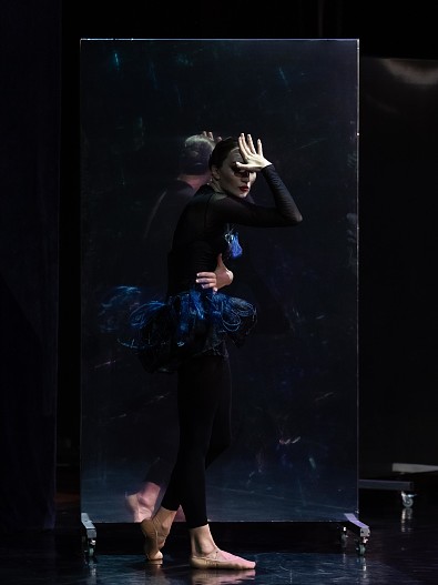 «Балерина, которая еще и говорит — такого еще не было! Но именно благодаря сочетанию живого голоса и хореографии в спектакле удается раскрыть главного героя — Артиста — как живого, трансформирующегося человека. В каждой сцене он — разный. Некоторые сцены в спектакле и вовсе разрушают "четвертую стену": Артист оказывается на стороне зрителя. Это дает сумасшедший эффект в моменте, — рассказывает Алёна Ледях. — Это нужно, чтобы зритель тоже задумался о том, кто он на самом деле, где он играет, а где — настоящий. Ведь если вглядеться в самую суть, этот вопрос касается не только артистов, наш спектакль — про каждого».