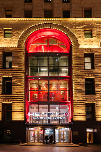Отличительной особенностью «НеДетского», помимо многообразия вкусов, является насыщенная событийная программа. Развлечения спускаются с верхних этажей ЦДМ в гастрономическую игровую. В пространстве созданы условия для комфортного проведения встреч и семейного отдыха утром и днём, а вечером здесь «всё по-взрослому»: концерты, DJ-сеты, авторские игры, шеф-ужины, тематические дегустации, арт-проекты и многое другое. В «НеДетском» гастрономия становится культурой, а впечатления — частью городского ритма.