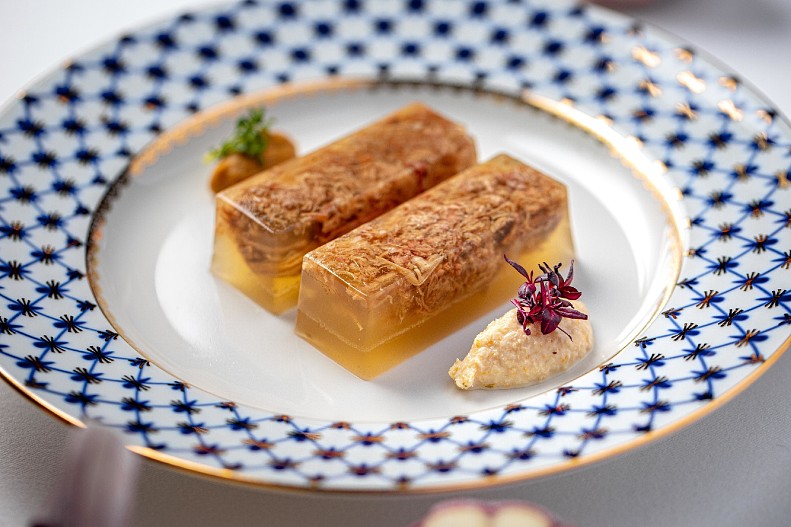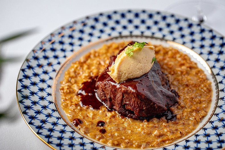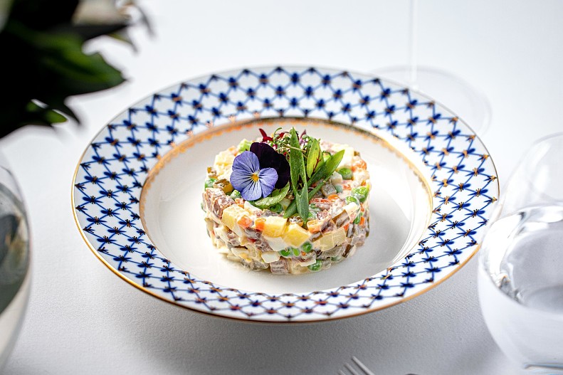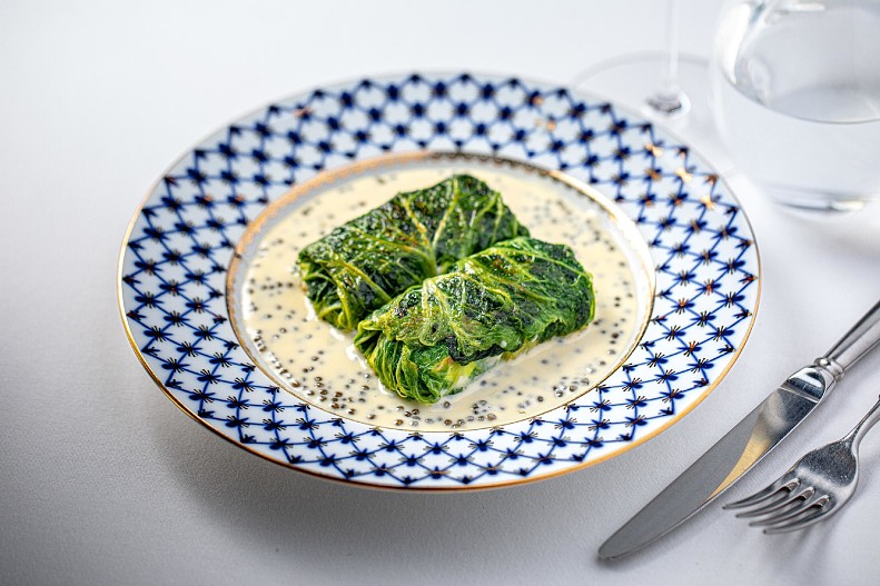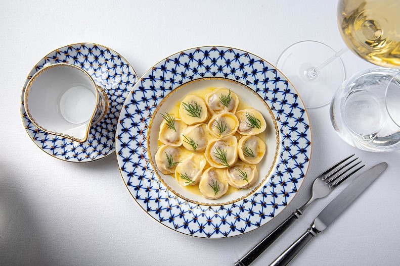 Традиционно зимой команда ресторана обновляет имперское меню, которое действует до тех пор, пока лежит снег. Классические закуски всегда в меню: устрицы с черной икрой, заливное из чечуги, холодец, соленые грибы, малосольные огурчики из тыквы и, конечно, гусиная печень. Фаворитом стали голубцы с нежным мясом дальневосточного краба. Цыпленок в златой броне благодаря филигранному вкусу и роскошной подаче становится гастрономическим открытием нового сезона. Один из главных хитов меню – пельмени получают новое прочтение и теперь представлены с грибами.