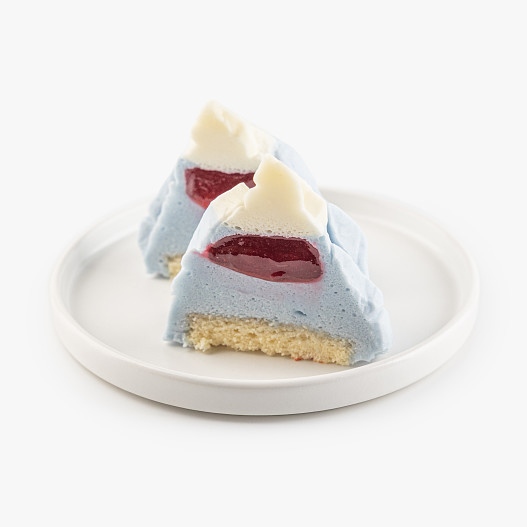 Состав десерта чистый и понятный. Верхушка горы, словно снег, покрыта крем-чизом. Внутри – бисквит, натуральные ягодные ароматизаторы, малиновое пюре и ванильная паста. Десерт поможет быстро выбраться из дофаминовой ямы, ведь вкусная еда помогает выработке гормонов радости.