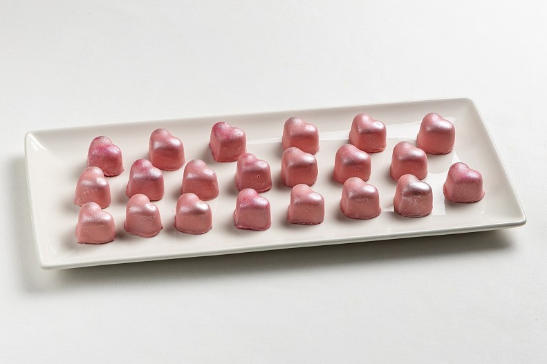 Всех гостей ждет милый комплимент в виде розового мармеладного сердца, покрытого шоколадом.