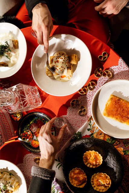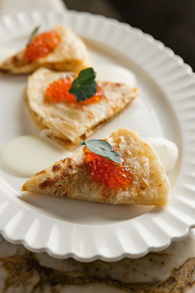 Под руководством шеф-повара Алексея Чигака классические русские блины обретают современное звучание, сохраняя при этом узнаваемую душевность. В масленичном меню нет прямых цитат и буквальных повторов — здесь традиция переосмысляется через текстуры, соусы и сочетания.