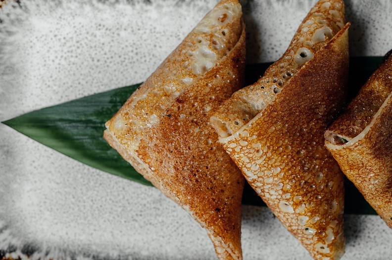Классические тонкие блины, обжаренные на топленом масле гхи до золотистой корочки, с насыщенным сливочным ароматом.
