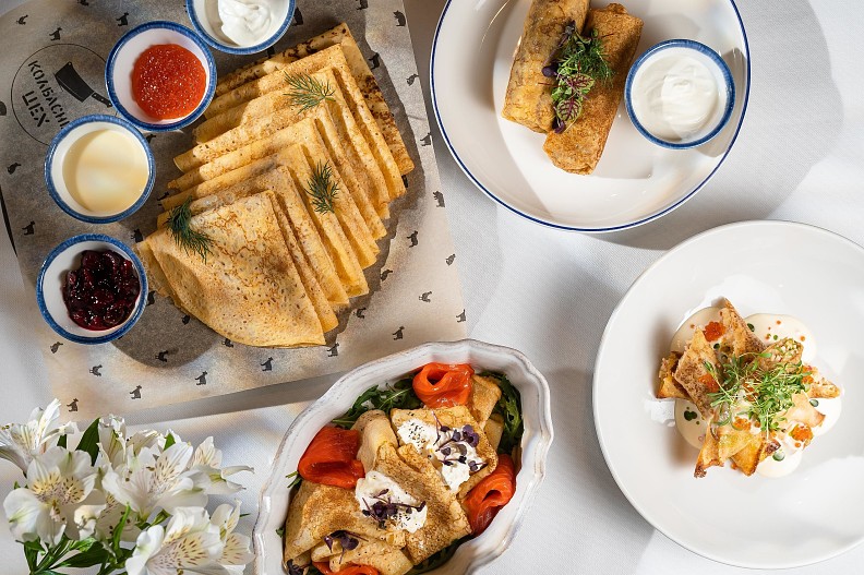 • С крабом, с телятиной, с лососем: масленичные блины на любой вкус в ресторане «Колбасный цех & Магадан»