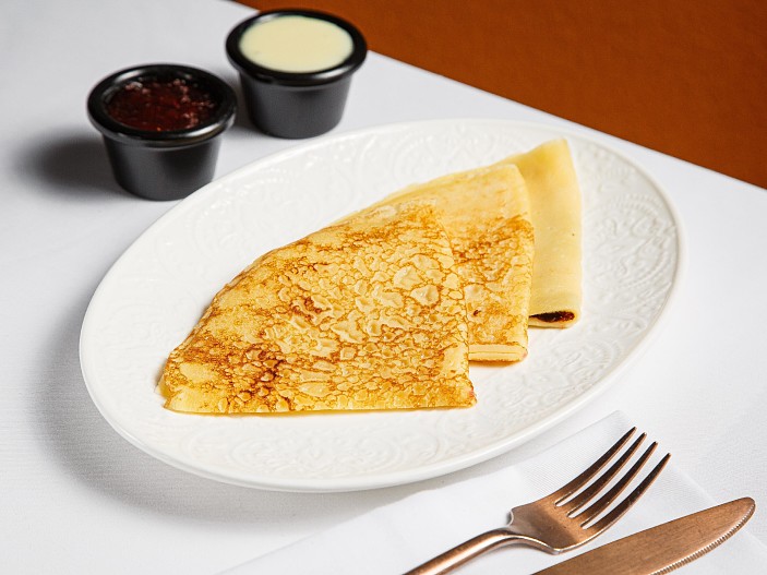 Пшеничные блины, 3 шт. Классическая подача с возможностью дополнить: