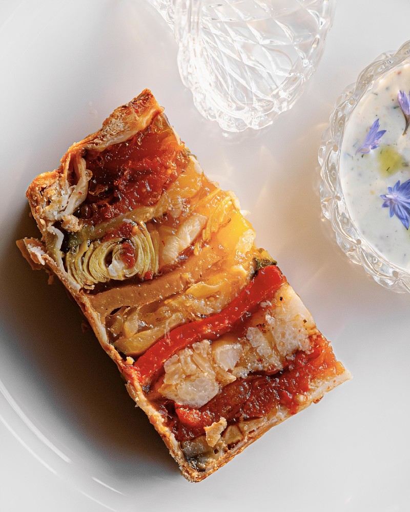 В постном меню от Влада Пискунова — всё то, за что мы так любим русскую кухню: пирожки с квашеной капустой, грибами и картошкой, а также соленые грибы (опята, маслята, белые, грузди со сметаной) и огородные соленья (капуста, огурцы, помидоры). В качестве закуски можно заказать, например, винегрет с солеными грибами или оливье с постным майонезом. Баклажан, перец, лук и грибы шеф заправляет ореховым соусом, а голубцы готовит из кабачка с постной сметаной и вялеными томатами. На первое — грибной суп из подосиновиков или валаамские щи с белыми грибами и квашеной капустой. Из горячих блюд будет любопытно попробовать кундюмы из пшенично-ржаного теста с грибной начинкой, овощной плов, гречневую кашу с овощами, а также вареники с картошкой и грибами. Завершить обед или ужин стоит одним из постных десертов: варениками с вишней, яблочным тартом или чайным кексом.